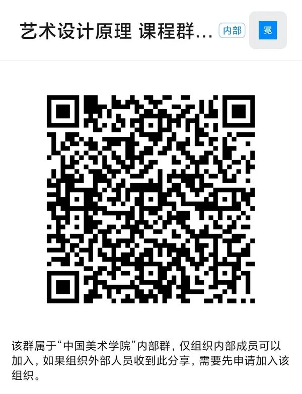 12月14、16、19、21、23、26、28、30日(周一三五)17:30-20:30,“艺术设计原理”课因故改为“钉钉”线上授课。